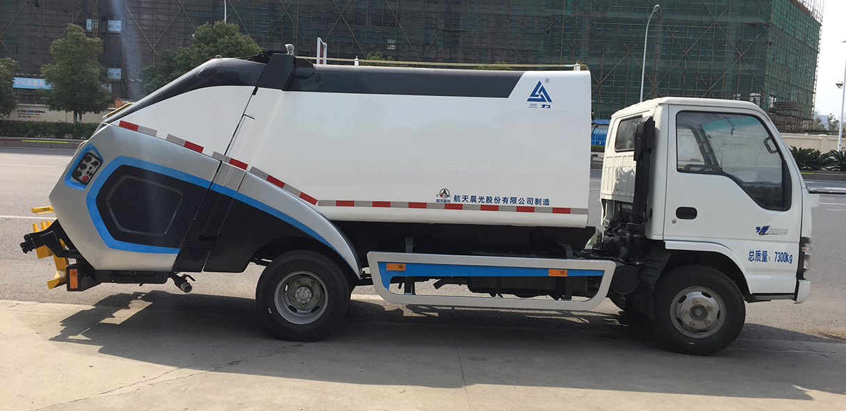 該產(chǎn)品經(jīng)過多年的積累沉淀,不僅在性能上保持穩(wěn)定,在外形上更是一步步創(chuàng)新,全包的擋泥板、側(cè)護(hù)欄設(shè)計(jì),不僅外觀優(yōu)美,而且強(qiáng)度過硬,連接緊密,充分保證了行車安全;提桶翻轉(zhuǎn)架,通過全新的設(shè)計(jì),加強(qiáng)了翻轉(zhuǎn)機(jī)構(gòu)壓桶板以及翻轉(zhuǎn)架的強(qiáng)度,在配合新造型的同時(shí),進(jìn)一步提高了提桶機(jī)構(gòu)的使用性能;全包的尾燈設(shè)計(jì),置于裝填體尾部,不僅提升了新造型的整體性,而且大大提高了行駛安全性;新外形產(chǎn)品采用新一款污水箱,中間開寬口的污水箱較之兩邊開口的污水箱,使得放水更加迅速、充分;新外形產(chǎn)品電腦板上增加了液晶顯示屏,具有故障報(bào)警及顯示功能,能夠迅速判斷車輛故障,且具有裝載計(jì)時(shí)計(jì)次功能,對(duì)于整車的保養(yǎng)情況能夠更加清晰地顯示;同時(shí)電腦板能夠?qū)崿F(xiàn)發(fā)動(dòng)機(jī)轉(zhuǎn)速連續(xù)曲線,實(shí)現(xiàn)發(fā)動(dòng)機(jī)自動(dòng)加、減速功能,降低噪音及油耗。